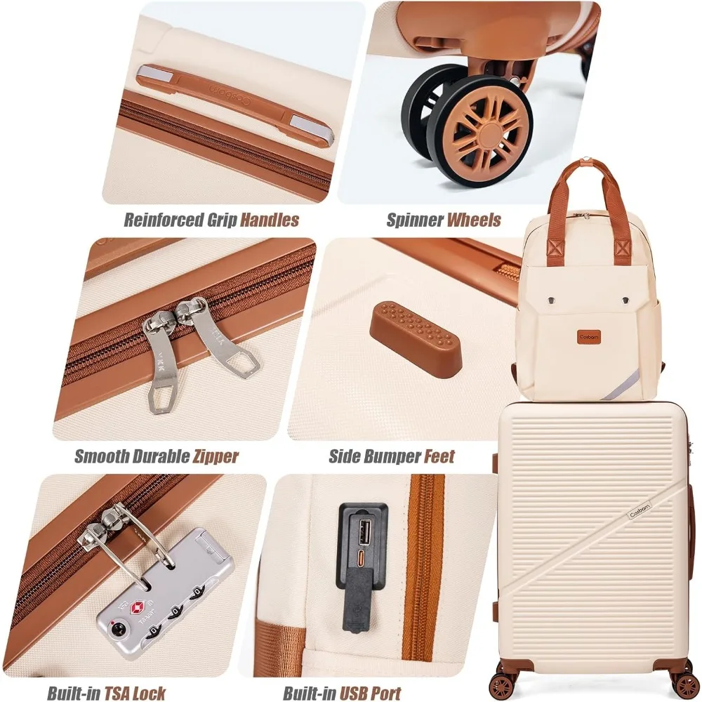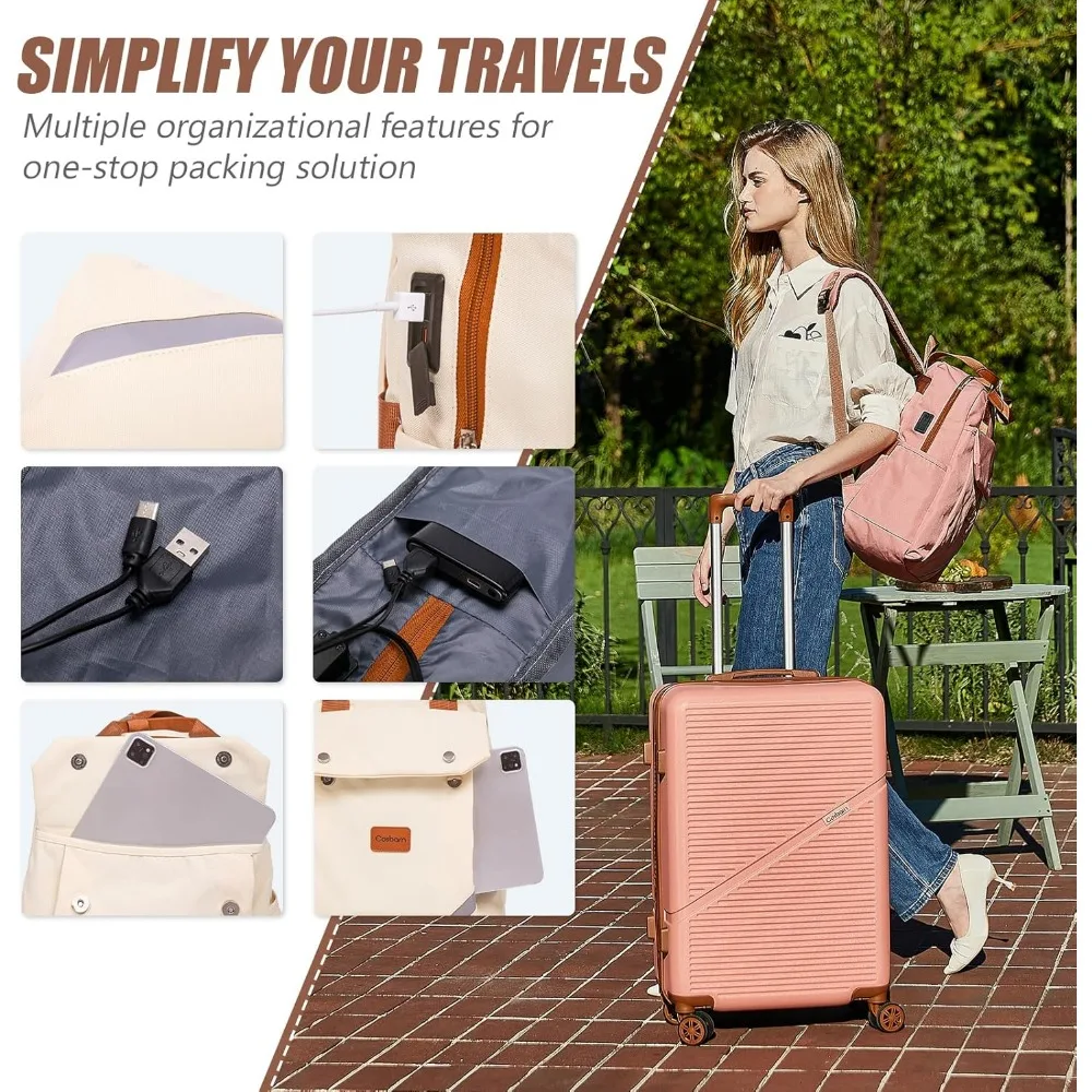 carry-on luggage set: 22x14x9 inch airline approved, 20 inch lightweight abs suitcases with wheels and tsa lock