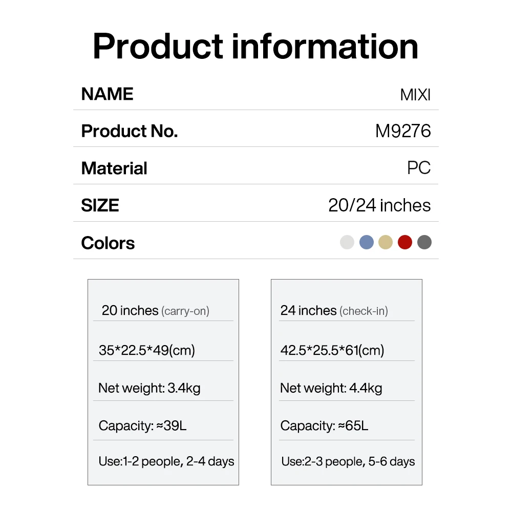 | Luggage Size | 24Inches 600mm |